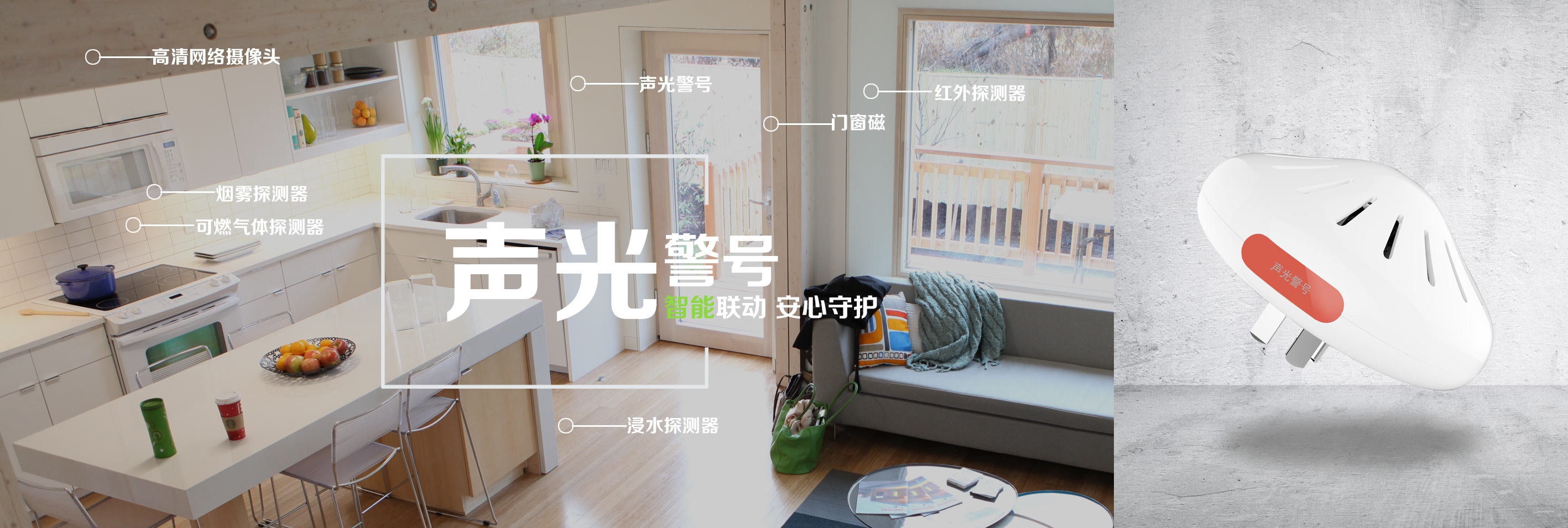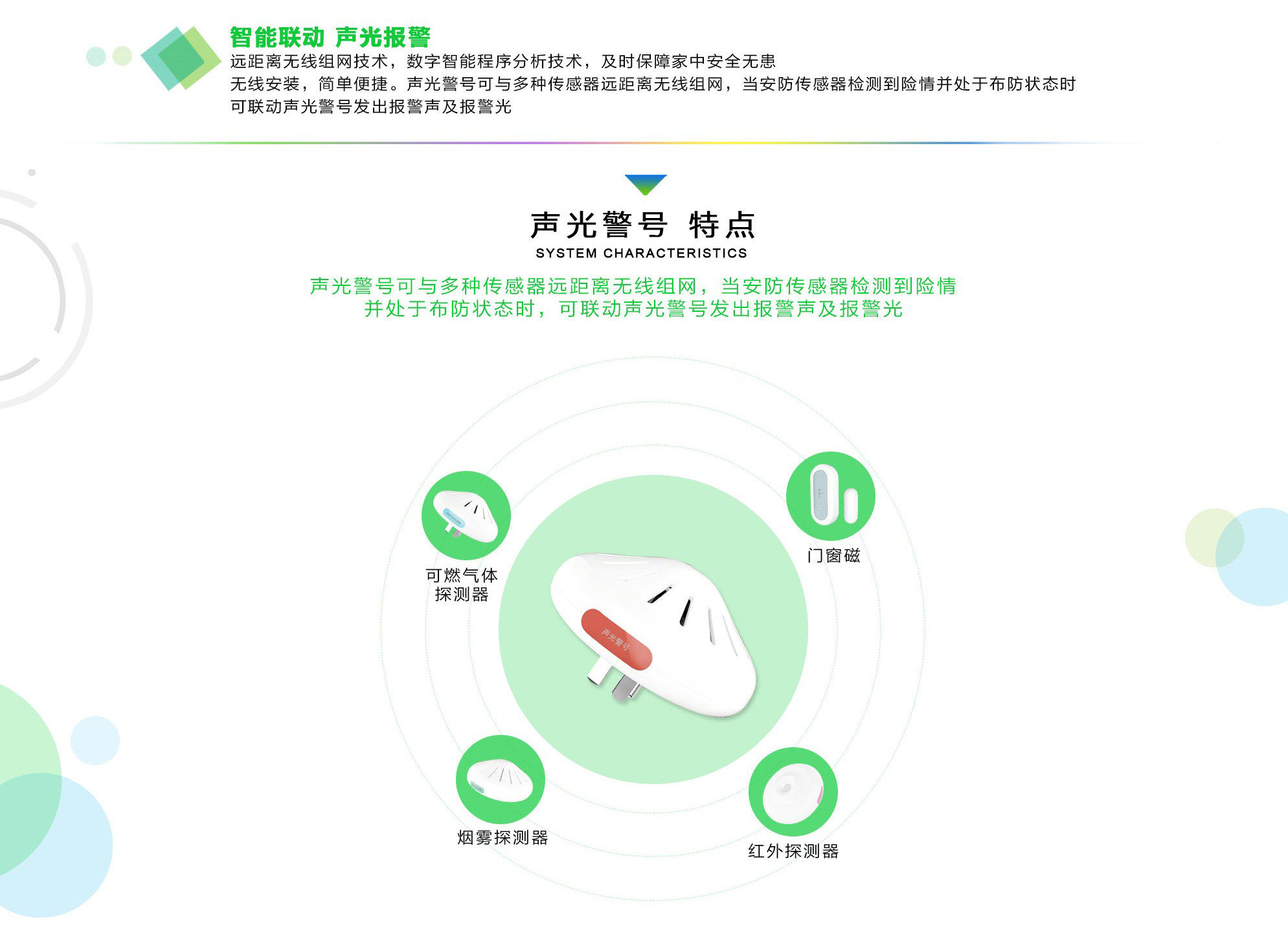 无线安装,简单便捷。声光警号可与多种传感器