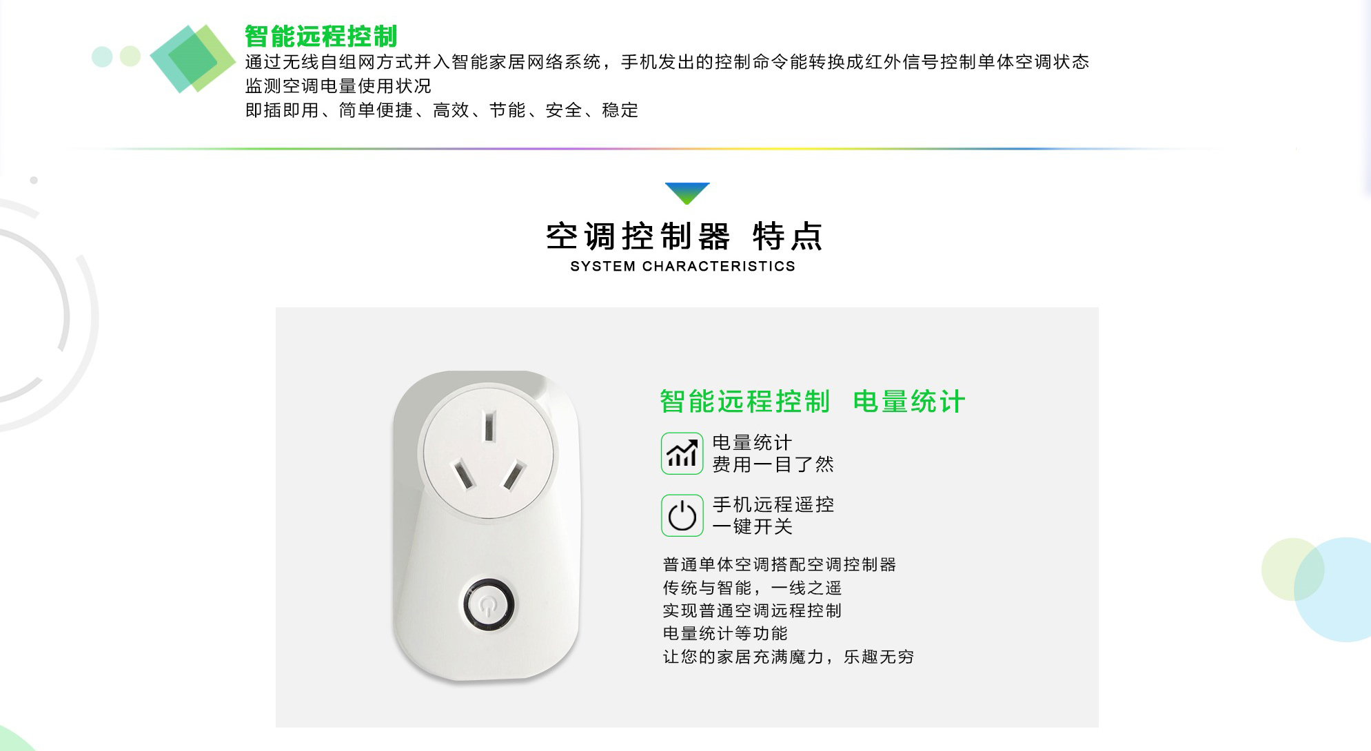 简介:空调控制器采用全球统一标准ZigBee 2.4G技术。可以通过无线自组网的方式并入智能家居网络系统。手机或平板发出的控制命令,能转换成红外信号控制单体空调状态。同时还可以检测空调电量使用状况。