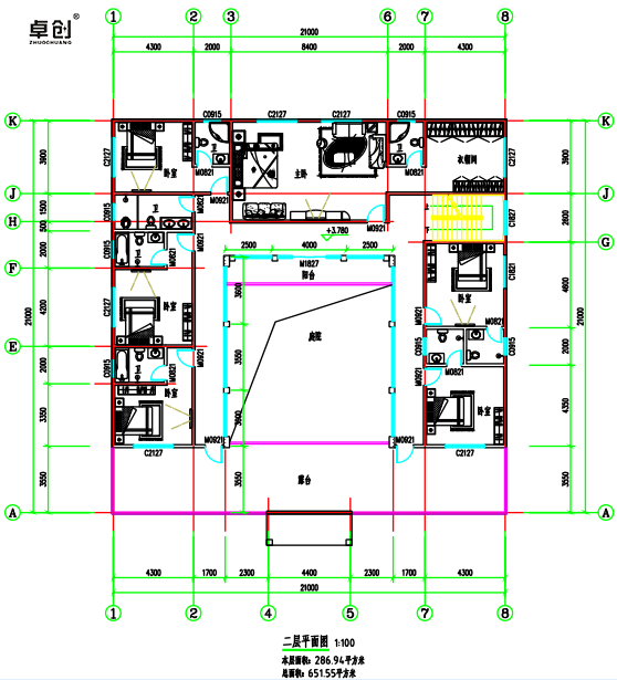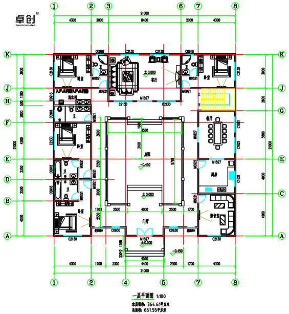 双层仿宫廷四合院建筑 总面积为651.55平方米